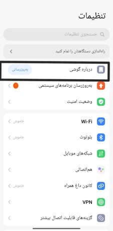 مرحله دوم: سپس به قسمت درباره گوشی بروید