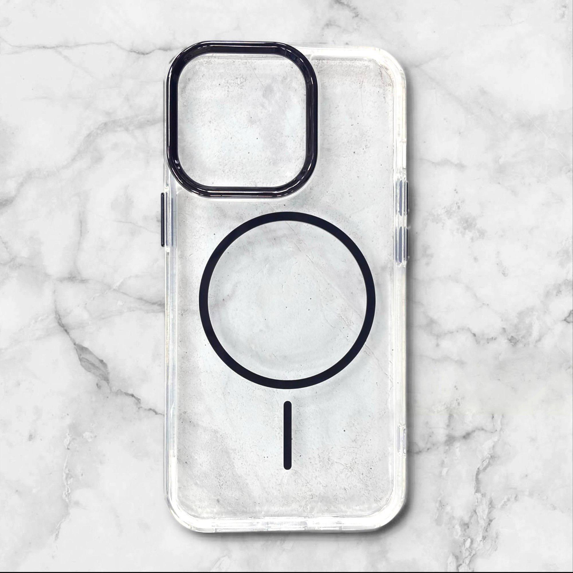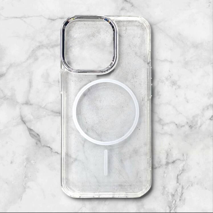 گر قاب شفافِ تمیز میخوای که هم گوشیت رو زیباتر نشون بده هم با شارژرهای مگسیف هماهنگ باشه، این مدل دقیقا همونه. بدنهی شفافِ باکیفیت، حلقهی استاندارد MagSafe برای جذب قوی و فریم فلزی دور لنز که یک حس لوکس و محافظت بهتر میده. سبکِ مینیمال و مناسب استفادهی روزمره