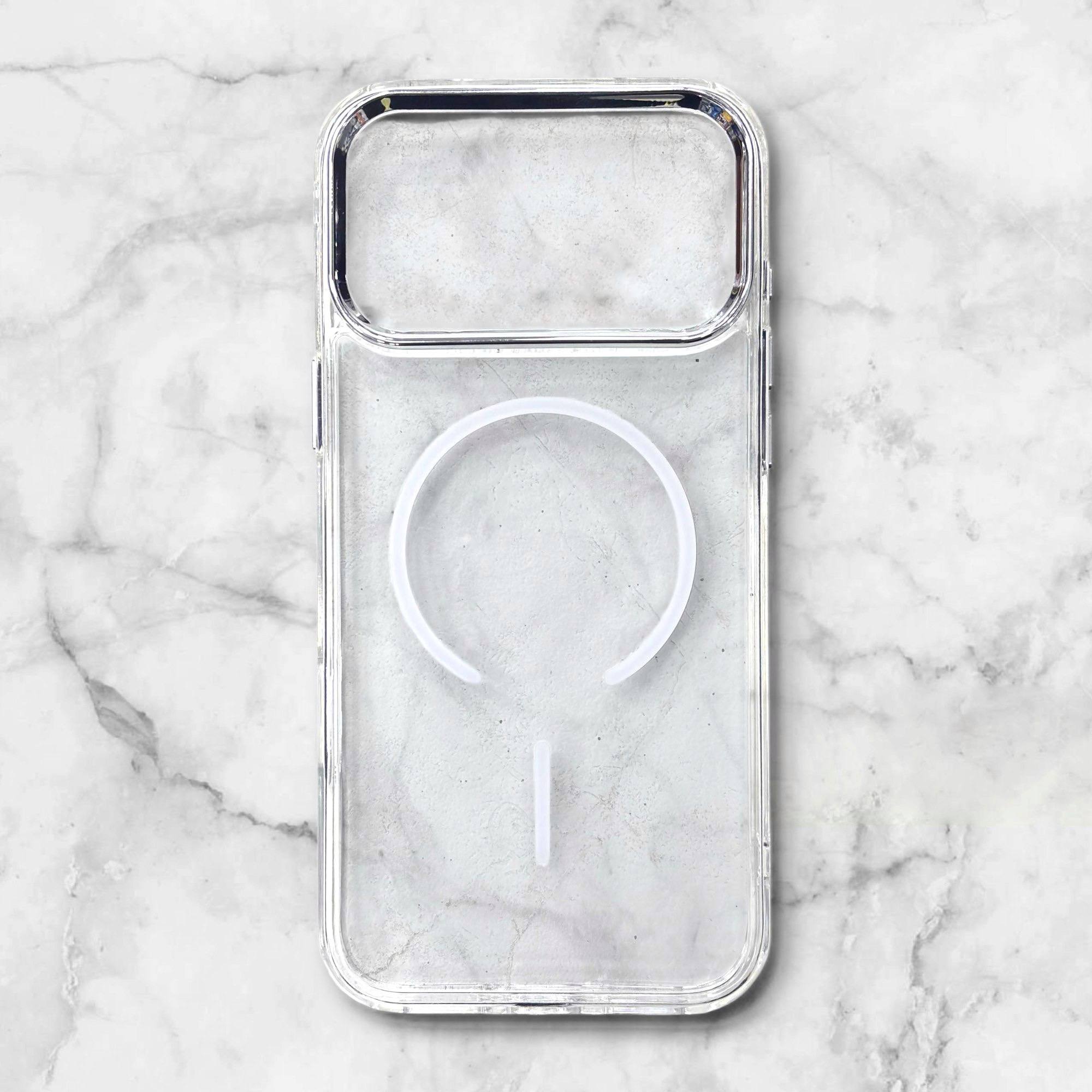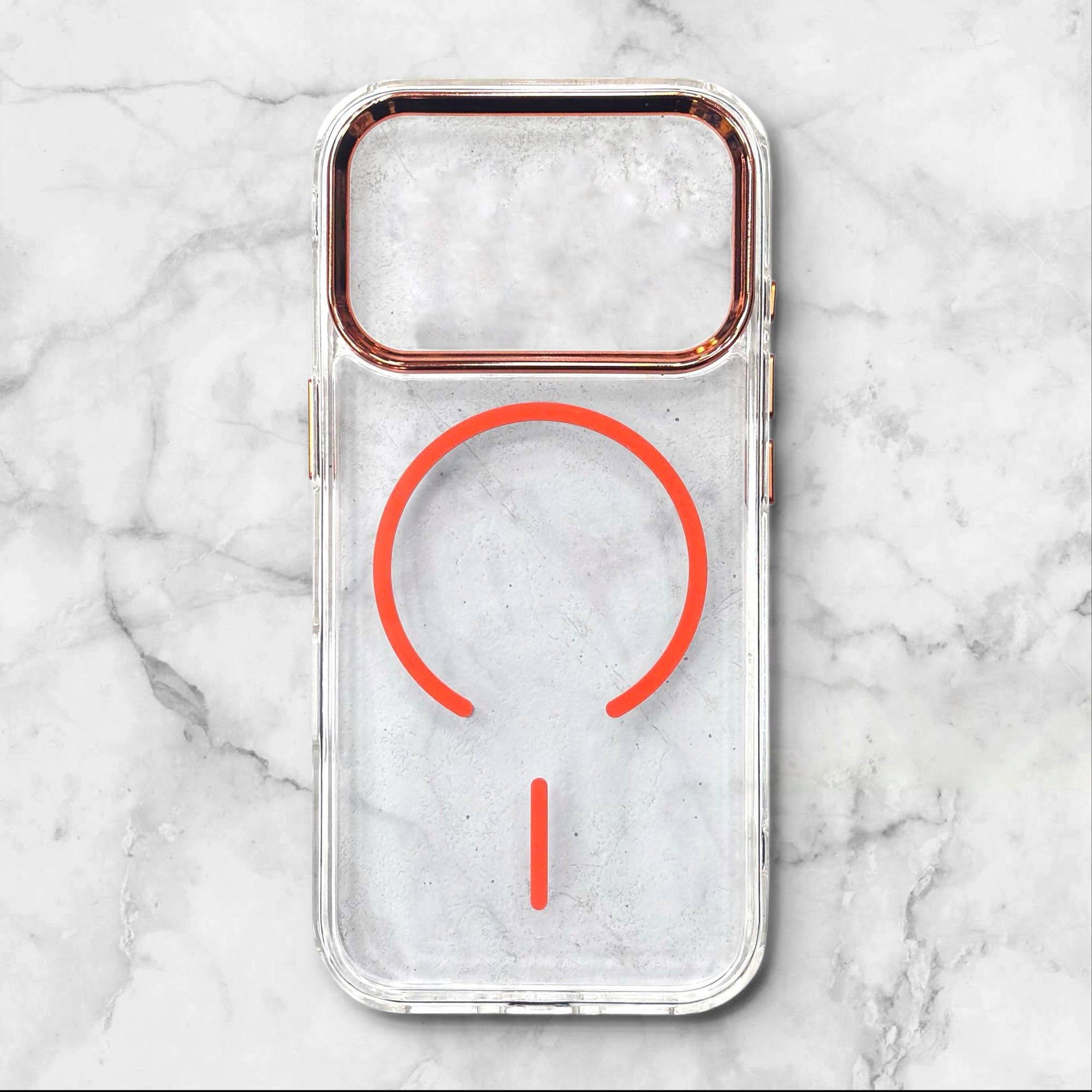 گر قاب شفافِ تمیز میخوای که هم گوشیت رو زیباتر نشون بده هم با شارژرهای مگسیف هماهنگ باشه، این مدل دقیقا همونه. بدنهی شفافِ باکیفیت، حلقهی استاندارد MagSafe برای جذب قوی و فریم فلزی دور لنز که یک حس لوکس و محافظت بهتر میده. سبکِ مینیمال و مناسب استفادهی روزمره