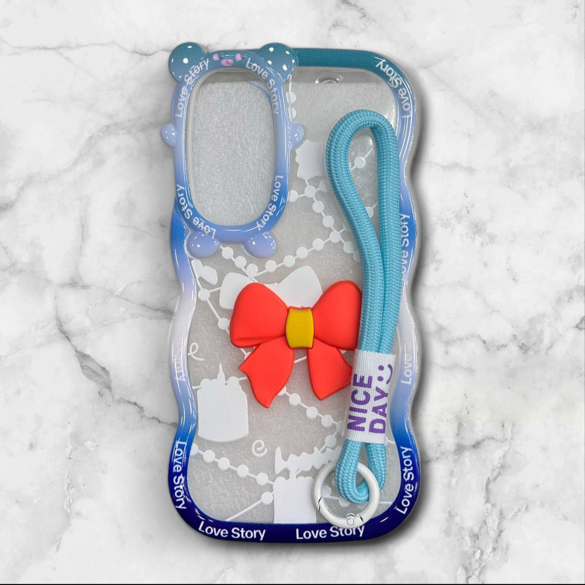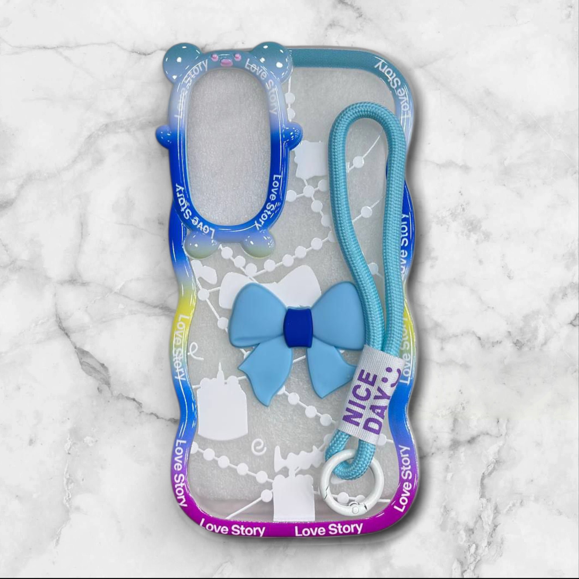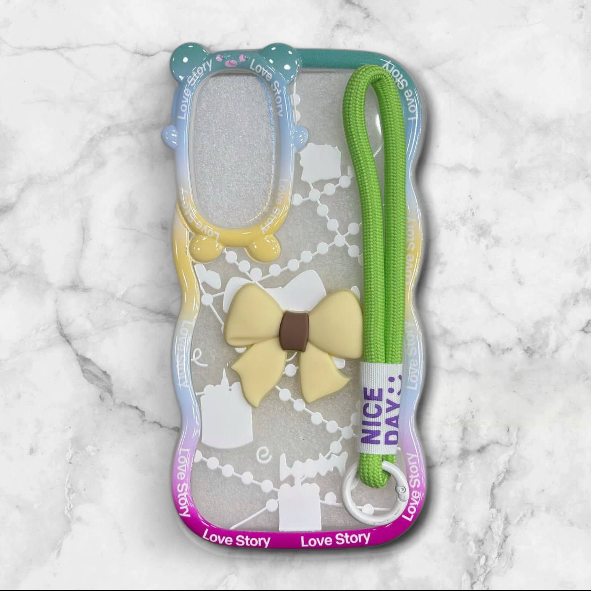 قاب شفافِ خوشاستایل با فریم دوربین خوش رنگ، پاپیون3بعدی و بند دستی اویز. هم خوشگل، هم کاربردی—گوشی رو خوشدستتر و زیباتر میکنه.ارسال سریع از یونیک کیس