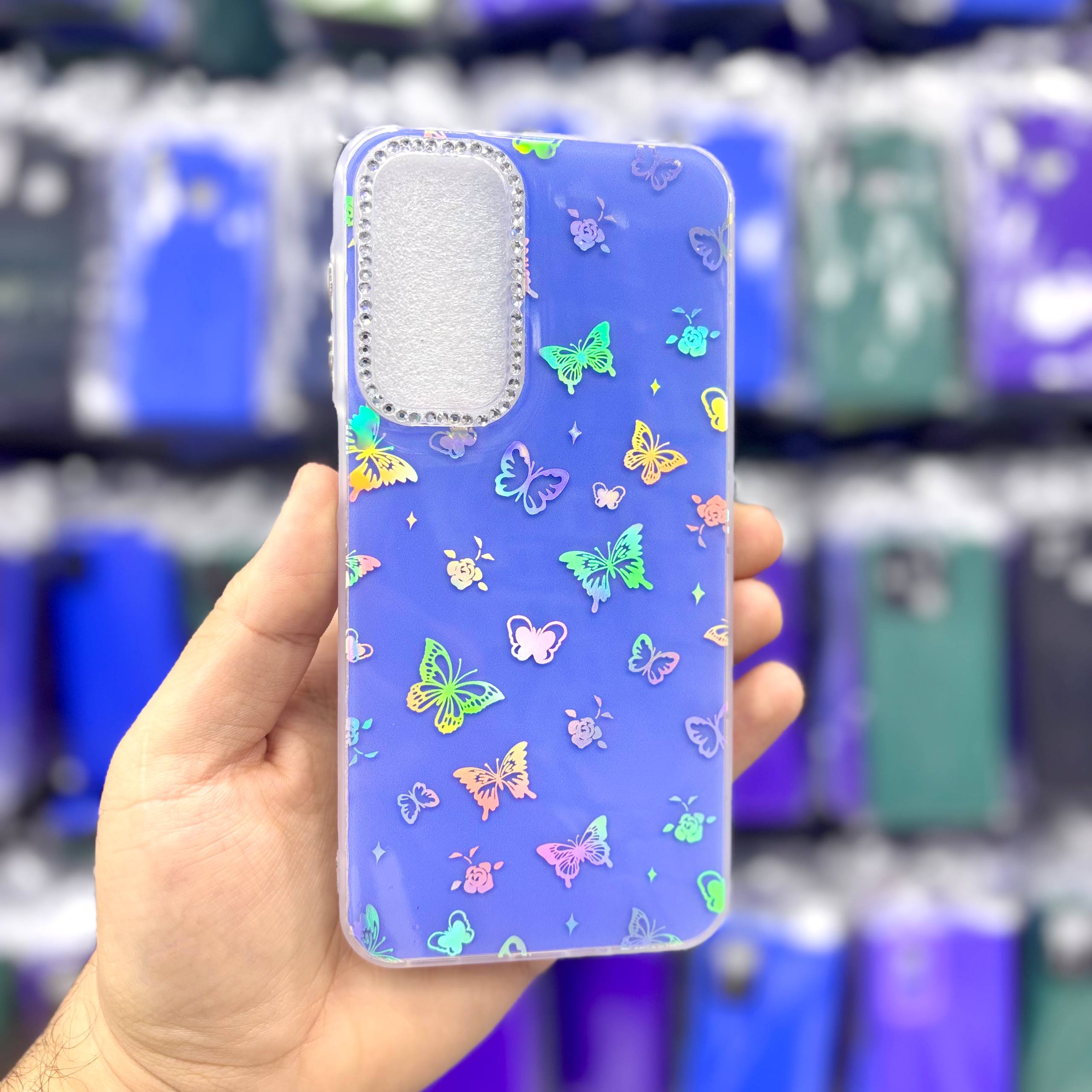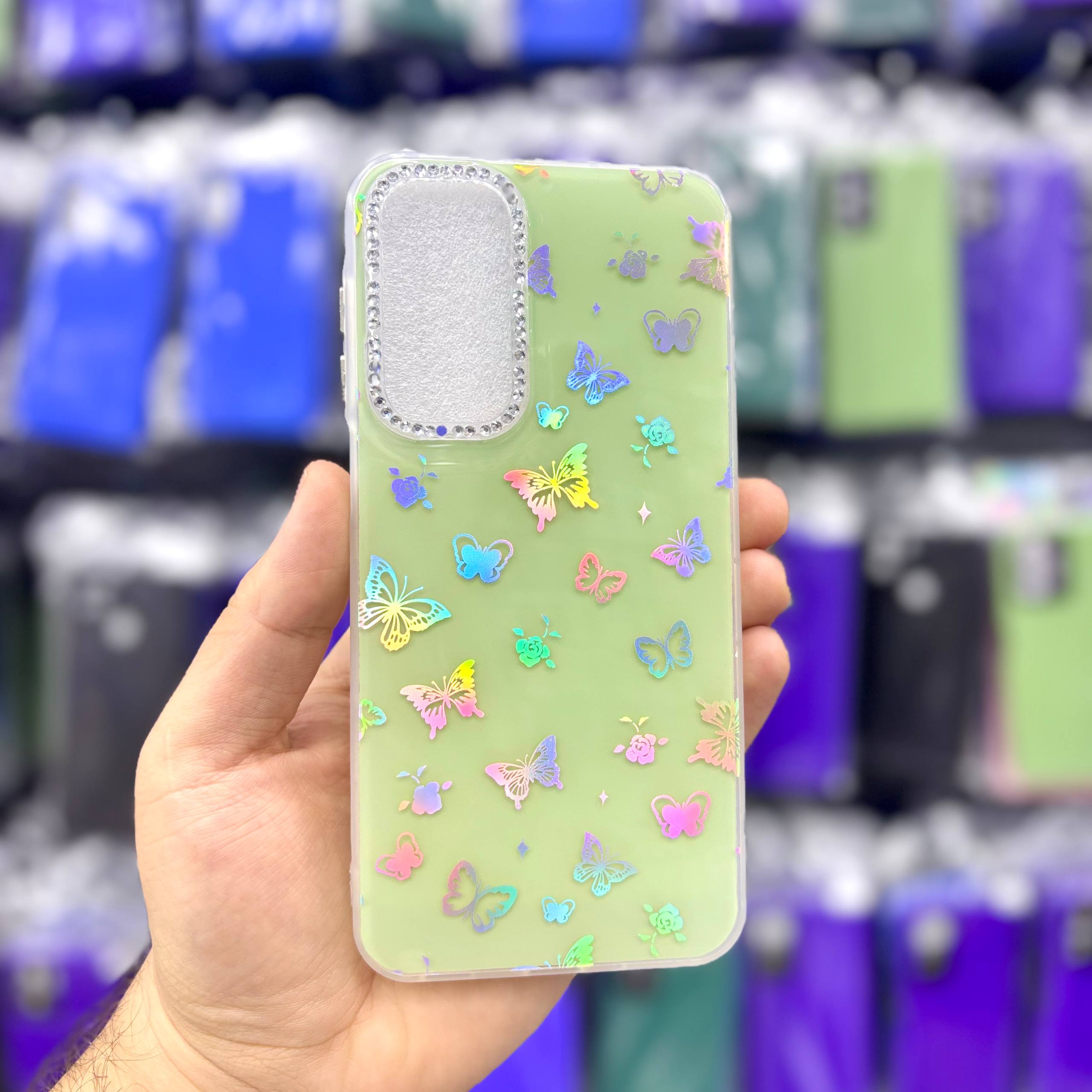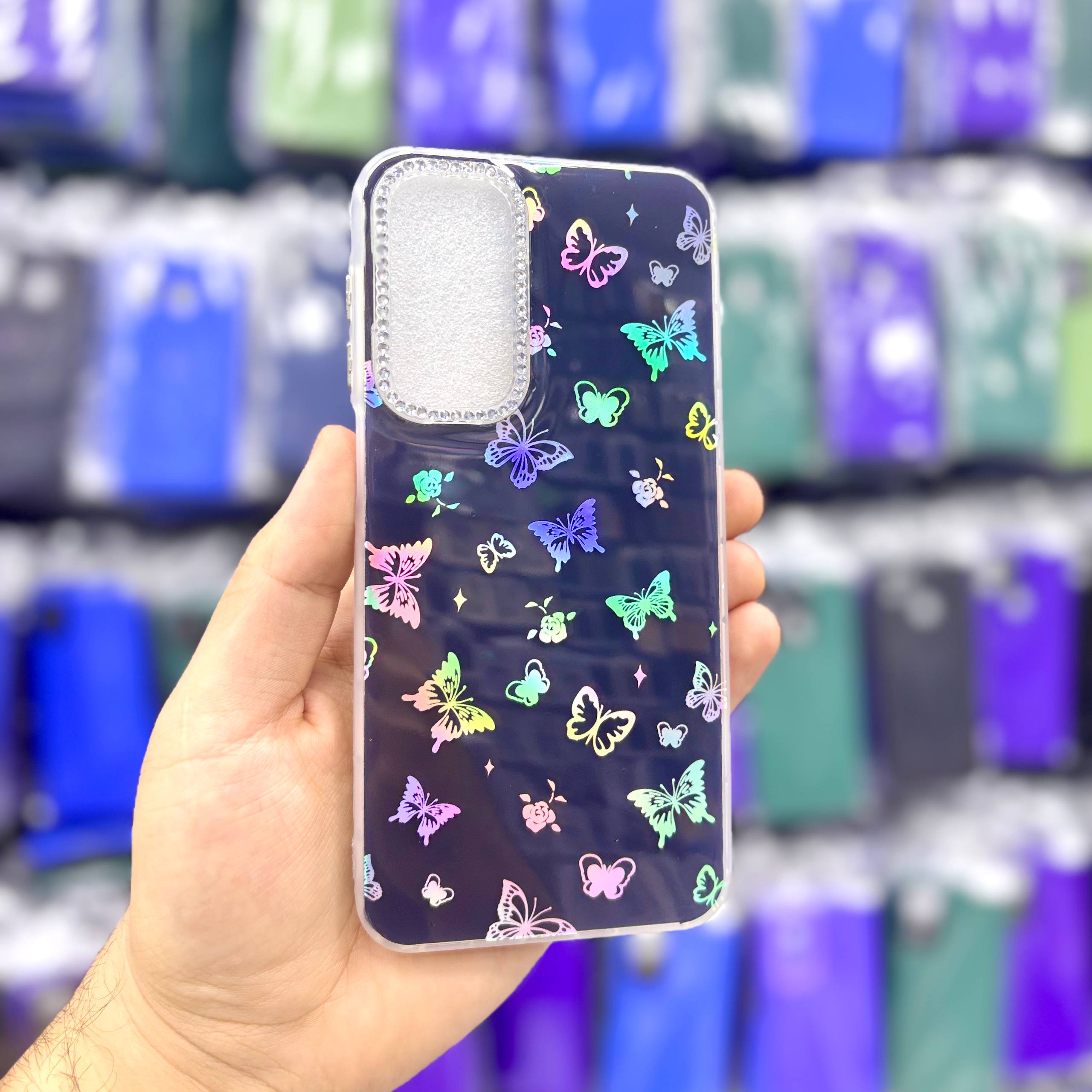 قاب سامسونگsamsunga17 پروانهای نگیندار هولوگرامی بدنه با پروانههای هولوگرامی براق، دور دوربین نگینکاریشده و رنگهای شاد که زیر نور برق میزنند درست شده که از گوشی هم محافظت میکند،مخصوص استایلهای دخترانه.ارسال سریع از یونیک کیس