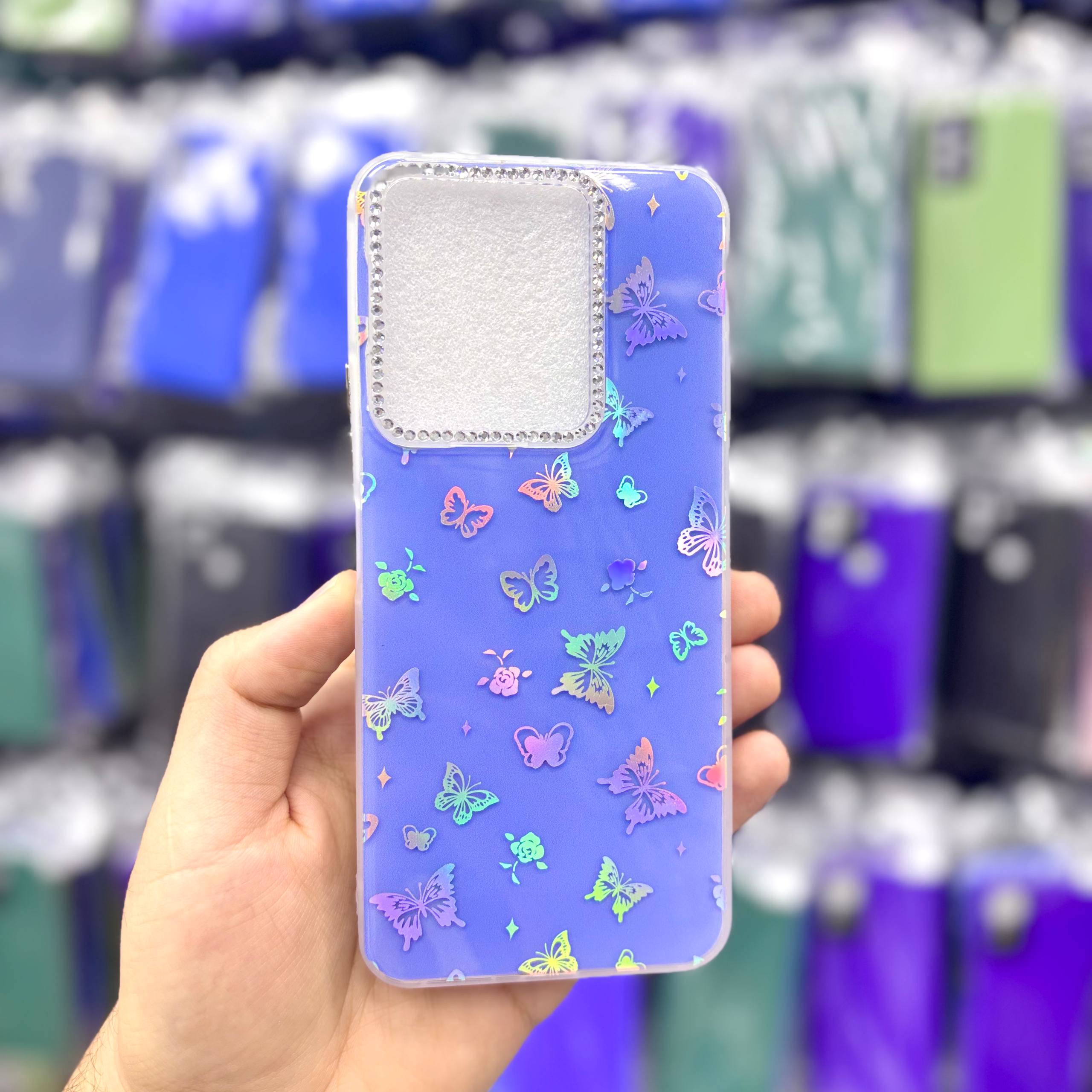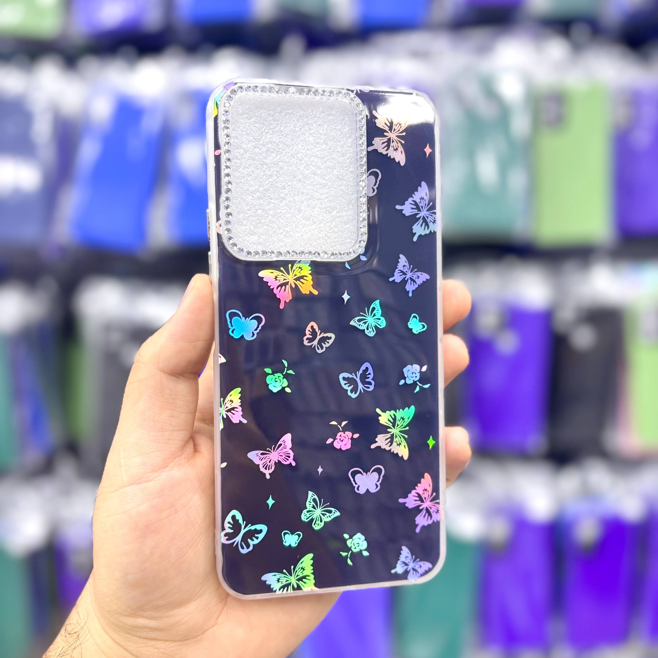 قاب شیائومیpococ85 پروانهای نگیندار هولوگرامی بدنه با پروانههای هولوگرامی براق، دور دوربین نگینکاریشده و رنگهای شاد که زیر نور برق میزنند درست شده که از گوشی هم محافظت میکند،مخصوص استایلهای دخترانه.ارسال سریع از یونیک کیس